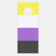 Percha de puerta con la bandera de orgullo no binaria del lápiz labial. Una bandera amarilla, blanca, púrpura y gris oscuro del movimiento del orgullo del enemigo