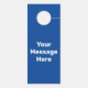 Este colgador de la puerta azul profundo tiene texto en blanco. Puede editarlo para mostrar su mensaje personalizado.