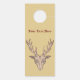 Este perchador de puerta de papel está bronceado con una cabeza de ciervo macho delineada en rojo con grandes cuernos en la parte delantera y trasera. Personalizar el texto en la parte delantera y posterior con la plantilla.