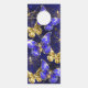 Composición de lujosas mariposas de zafiro y joyas de oro sobre fondo de textura azul.