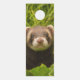Percha de puerta con una adorable fotografía que muestra un pequeño hurón marrón parado en un pasto largo. ¡Cuidado como puede ser! El texto dice: No molestar.
