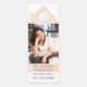 Diseño de colgador profesional de puerta de mercadotecnia perfecto para profesionales inmobiliarios. La parte delantera cuenta con un diseño fotográfico completo con un techo de una casa rosa y un diseño de chimenea, además de una placa enmarcada con el nombre de la empresa y el número de teléfono. En el reverso se encuentran el techo y la chimenea rosa rosado, además de los títulos de llamada a la acción, la información de marketing y los detalles de contacto. Puede personalizar el tamaño del texto, la fuente, los colores y el color de fondo para que se adapte a sus preferencias personales.