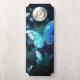 Fabuloso, brillante, azul y amarillo, mariposa nocturna sobre fondo oscuro.