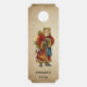 Percha de puerta con un viejo Navidad del Viejo Mundo, Papá Noel. El clásico santa del viejo mundo, con su famoso abrigo rojo y llevando una bolsa llena de juguetes. Este Santa de la vieja usanza es delgado y tiene un bastón para caminar por la tierra regalando juguetes a todos los chicas y niños. Fondo antiguo de estilo pergamino.