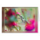 Un colibrí se alimenta entre el foco y fuera de foco de las flores de Fuchsia.