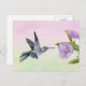 Esta postal muestra una reproducción de mi pintura original al óleo de un colibrí.
