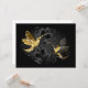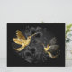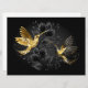 Colibríes con joyas negras y doradas sobre un fondo gris adornado con plantas. Aves de joyas. Ave dorada. Ave dorada.