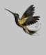 Colibríes con joyas negras y doradas sobre un fondo gris adornado con plantas. Aves de joyas. Ave dorada. Ave dorada.