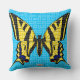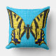 Dibujo digital de una mariposa cola de golondrina tigre oriental, que muestra sus alas negras y amarillas contra un fondo azul.