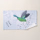 Coqueto colibrí verde con flores azules de cerezo en un fondo azul floral y brillante. Personalizar con tu nombre.