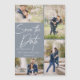 Toma tus 4 mejores imágenes de tu sesión de fotos de compromiso. Presenta un diseño con letras a mano que dice Guardar la fecha.