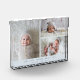 Bloque de fotos moderno y minimalista de recién nacido con collage de 3 fotos sobre fondo azul. Puedes agregar la foto de tu bebé con información estadística de nacimiento.