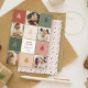 Captura la magia de la temporada con nuestra exquisita tarjeta de vacaciones. Con un cautivador collage de 5 fotos en pasteles y oro, un encantador árbol de Navidad, y el reconfortante mensaje "Feliz y brillante" en elegante letra sans-serif. Añade un toque personal con el nombre y el año de tu familia. El diseño divertido y vibrante se revierte a un delicioso patrón de Navidades baubles. Difunde alegría y haz recuerdos con esta obra maestra festiva.