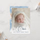 Bienvenido a tu pequeño mundo con esta tarjeta de invitación azul y blanca con un diseño de collage de fotos limpio y moderno. Perfecto para compartir múltiples fotos de bebés, este elegante diseño de tarjeta destaca el nombre de su bebé, estadísticas de nacimiento y un mensaje sincero en un estilo mínimo y elegante. Personalizar fácilmente el texto y sube tus fotos favoritas de recién nacidos. Ideal para niños y invitaciones de temática neutra.