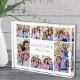 Bloque de fotos acrílicas "Abuela" personalizado. Este sencillo y elegante bloque de fotos acrílicas es una hermosa manera de mostrar preciados recuerdos. El diseño cuenta con espacio para ocho fotos, dispuestas en un borde alrededor de los bordes, manteniendo el foco en el texto significativo en el centro. En el centro, la "abuela" se muestra en una fuente serif clásica, con una segunda línea escrita a mano para agregar los nombres de los nietos o un mensaje especial. El fondo blanco limpio le da un toque atemporal y refinado. Personalizable completo, puede ajustar el texto, los tipos de letra, los colores y las fotos para crear un regalo personal y significativo, perfecto para el Día de la Madre, cumpleaños, vacaciones o cualquier ocasión especial. Este bloque de fotos acrílicas decorativas sirve como un recuerdo atemporal para celebrar a la abuela.