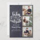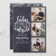 Un diseño elegante y bohemio de collage de 3 fotos para las fiestas para que lo personalices con tus fotos favoritas en marcos dorados, mensaje, nombres y año en un fondo de pizarra. El reverso presenta copos de nieve que caen sobre un fondo de pizarra a juego. Diseñado por Thisisnotme©