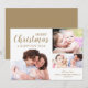 Sencilla tarjeta de vacaciones moderna para desear a su familia y amigos una Feliz Navidad. La parte delantera incluye un collage de 4 fotos de tus fotos familiares favoritas con Feliz Navidad y Feliz Año Nuevo en tipografía de oro. Personaliza con tu apellido.