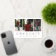 Tarjeta de invitación de graduación de un tipo minimalista con múltiples fotos. La parte delantera tiene un collage de tres fotos con "Graduado" en letras grandes junto con el nombre del graduado en Relieve metalizado de oro real. El revés tiene tu mensaje personal. Esta moderna y sencilla tarjeta de invitación es perfecta para un graduado de secundaria.