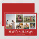 ¡Felices fiestas! Envía tus cálidos deseos a amigos y familiares esta temporada navideña con una tarjeta de Navidad de collage de fotos personalizable. Cuenta con tipografía elegante moderna con un fondo rojo. Personaliza añadiendo tus fotos personalizadas, nombres, año y otros detalles. Esta tarjeta minimalista de Navidad está disponible en otros colores y cartulinas.