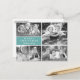 La tarjeta postal de vacaciones de bienvenida contiene cinco de tus fotos favoritas en una cuadrícula moderna, con un tipo de letra clásico en rojo y un nombre de familia de guiones en negro. Punto para añadir tu mensaje personal.