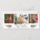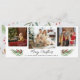 Tarjeta navideña moderna de Collage de fotos de Feliz Navidad 3 Envíe sus saludos navideños con esta elegante y moderna tarjeta de foto navideña. Cuenta con hermosos y originales arreglos de Navidades pintados, escritura moderna y festiva, y un collage de tres fotos. En la parte trasera se muestra un patrón con varios elementos botánicos Navidades para dar un toque especial a sus fiestas y celebraciones de Navidades.