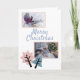Tarjeta moderna de collage de fotos navideñas con dos fotos. Agrega dos de tus fotos favoritas de las vacaciones familiares a la tarjeta. El texto de feliz Navidad está en escritura moderna y trendy sobre fondo blanco. Árboles simples y lindos en forma de cortadores de galletas - estrella y campana. La tarjeta es ideal para una familia, parejas, una persona que quiera desear felices fiestas a amigos y familiares.