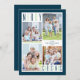 Diseño sencillo y moderno con un texto elegante MERRY CHRISTMAS en dos tonos de azul y verde sobre un fondo azul mediterráneo. Incluya cuatro fotos y el texto de su personalizado en la parte delantera y/o posterior (opcional). PUNTO DE FOTO: Seleccione fotos con el sujeto en el medio o prerecorte en formas similares como se muestra para imágenes fáciles de subir que llenen el espacio de la foto perfectamente. Póngase en contacto con el diseñador a través de Zazzle Chat o makeitaboutyoustore@gmail.com si desea modificar este diseño, en otro producto o si desea coordinar elementos.
