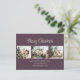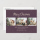 Elegantes postales personalizados Navidades de fotos moradas con un collage de fotos y un hermoso guión con letras a mano y caída de nieve. Personaliza fácilmente esta foto morada con tu postal navideña con tus imágenes, texto, año y un nombre familiar. También puede cambiar el fondo y la fuente a cualquier color.