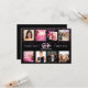Un collage de fotos, tarjeta de agradecimiento para chicas y mujeres. Personalice y agregue 8 fotos de su fiesta de cumpleaños número 21 (o cualquier edad) en la parte delantera. Añade tu nombre, edad, fecha. Un elegante fondo negro y un confetti rosa morado. Atrás: su nota de agradecimiento y su nombre. Fondo negro, texto blanco.