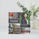 Comparte tu emoción por el logro especial de tu graduado. Utilice esta plantilla fácil de usar para la tarjeta de invitación de graduación con cuatro lugares para las imágenes e incluya la Clase de 2020, el nombre de la escuela y el nombre de su graduado. Una tarjeta cuadrada que recuerda a una tapa cuadrada de grad y fondo de pizarra para la clase, ambiente escolar.