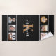Haz tu propio collage de fotos de familia. ¡Usa seis, seis de tus fotos favoritas de tus hijos, familia, amigos o mascota! Un fondo negro clásico. Personalice y agregue su nombre y sus iniciales de monograma. Letras blancas y doradas de colores en bloques modernos.