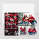 Celebre la temporada con esta acogedora tarjeta horizontal de Navidades de collage de fotos que presenta un atrevido fondo negro y rojo de mantas de búfalo con delicados copos de nieve blancos. En el lado izquierdo del frente, "Feliz Navidad" está escrito en una mezcla de tipos de letra clásicos de serif y script, con el nombre de su familia debajo. Los copos de nieve están esparcidos alrededor del texto para dar un toque festivo al invierno. El lado derecho de la tarjeta incluye un collage de tres fotos, que te da espacio para mostrar los recuerdos favoritos de las vacaciones, retratos familiares o fotos de mascotas. La parte posterior de la tarjeta incluye un punto para escribir una nota personal, o puede dejarla en blanco para escribir a mano el mensaje después de imprimir. Todas las fuentes, colores y fotos se pueden personalizar completamente para que coincidan con su estilo. Una manera cálida y clásica de enviar alegres saludos de vacaciones con un toque personal.