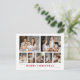 Moderno, plantilla de vacaciones de varias fotos totalmente personalizable y limpia que acomoda dos fotos grandes y cinco pequeñas con tres líneas de texto editable y divisores de línea opcionales. La parte posterior cuenta con campos de texto editables adicionales y plantilla de foto.