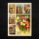 Esta tarjeta de notas plegadas orientada al jardín y a la agricultura presenta un collage de paquetes de semillas de dominio público y material de catálogo de semillas disponible a través del dominio público. Las obras de arte incluyen hollyhocks, guisantes dulces y otras flores, así como verduras como lechuga, sandía y calabazas. Los paquetes de semillas y catálogos ayudan a contar las historias de la vida, patrimonio y cultura de las granjas estadounidenses, y también pueden transmitir qué variedades de plantas se cultivaron durante años específicos. Esta obra de arte ha sido tratada con un filtro que simula la tela, lo que realza la sensación vintage. La mayoría de los catálogos de semillas son de finales del siglo XIX y principios del siglo XX. El fondo en el frente, en el interior y en la parte posterior es un crudo blanco roto. Hay un único paquete semilla con el nombre de la tienda Vintage Vibes en la parte posterior.