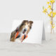 El collie áspero adorable del sable y blanco se vistió en cuello anaranjado y negro del bufón. Añada su propio gran texto para Halloween, cumpleaños, o consiga las tarjetas bien. Una porción de ventas será donada al rescate del collie.