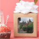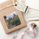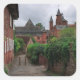 Foto pegatina de recuerdo cuadrado de un sendero que conduce a Collonges-la-Rouge, el pueblo rojo, con sus casas rojas y su castillo de piedra roja con torres en Limousin, en la frontera con la región de Dordoña en Francia.
