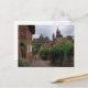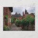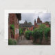 Postal de un sendero que conduce a Collonges-la-Rouge, el pueblo rojo, con sus casas rojas y su castillo de piedra roja con torres en Limousin, en la frontera con la región de Dordoña en Francia.