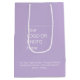 Eleva tus regalos corporativos con nuestra chic bolsa de compras mediana de color púrpura claro, que muestra tu logotipo y texto personalizable en blanco clásico.
