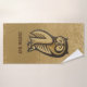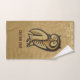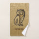 Icono de búho sobre fondo de grano beige. Símbolo de sabiduría y riqueza. Texto personalizado.