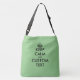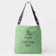 Color personalizado grande Mantener tranquilo el bolso de cuerpo cruzado. Graciosas bolsas de memes. Tipografía moderna con corona.