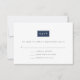 Elegantes, chic y modernos, estas tarjetas de respuesta de boda ultra modernas presentan "RSVP" en un elemento rectangular que se puede personalizar con un clic para que coincida con los colores de tu boda. Agrega la fecha de RSVP deseada, la redacción de aceptación y rechazo, y un campo para el número de asistentes en letra sans serif moderna gris carbón, luego ajusta el color a tu preferencia utilizando las instrucciones fáciles a continuación. Las tarjetas tienen un reverso con un patrón opcional de clave griega moderna. Se muestra en azul clásico y blanco.