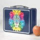 Diseño de cabeza de leones geométricos con arco iris. El color brillante hace de un majestuoso león