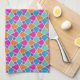 Toalla de moda o toalla de té, con un patrón islámico tradicional en rosa brillante, naranja, azul turquesa y verde claro, delineado en blanco; de la colección "islámica" de Posh & Painterly.