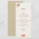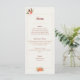 Bonita carta con rosas en tonos rojos, naranjas y amarillos, adornados con brotes de flores y sprays en tonos verde y marrón, sobre un fondo de colores suaves. La espalda es una sombra más oscura. El texto está enmarcado por un borde delgado, con un pequeño ramo en la parte inferior. Perfecto para una boda en otoño o un tema rústico. También hay invitaciones de coordinación y más disponibles.