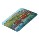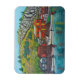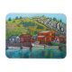 Escena de pintura colorida y estilizada del pequeño puerto colorido de Quidi Vidi en Terranova, Canadá sobre un imán de Lisa Lorenz