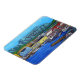 Colorido y estilizado cuadro del hermoso V&A Waterfront con el majestuoso telón de fondo de la montaña de la Mesa en Ciudad del Cabo, Sudáfrica en un imán