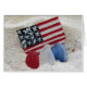 Piezas rojas, blancas y azules de cristal de mar contra un fondo de la bandera estadounidense