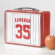 Casilla de almuerzo estilo beisbol con franjas estilo beisbol con colores que son completamente personalizable. Haga clic en personalizar y cambie el color de fondo. Para cambiar el color de las franjas, haga clic en personalizar, seleccione capa ThinStripes1 y cambie el color de relleno. Efectúe los cambios tanto en la parte delantera como en la trasera. Un regalo perfecto para el fanático del béisbol. Personalízalo reemplazando el texto del marcador de posición. Para obtener más opciones, como cambiar el tipo de letra y su tamaño/color, el espaciado entre letras o para expandir o contratar texto curvo, haga clic en el botón "Personalizar". *Tenga en cuenta que la marca de agua Zazzle que aparece en la vista previa del zoom NO aparecerá en el producto impreso final. © Rosewood y Citrus