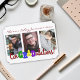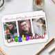 Esta colorida invitación de 3 fotos inteligentemente pone el "Grad" en "¡ConGRADulations!"