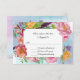 Tarjeta RSVP de respuesta romántica boda, con bonitas flores acuáticas de color y un fondo de color azul y rosa. Un área de texto con forma de esquina con cuadras, en el medio de la tarjeta, tiene texto personalizado listo para personalizar, para su día especial. Hay productos que coinciden.